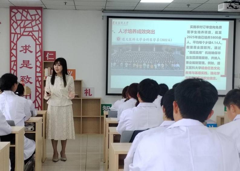 本次会议主要围绕我院三大核心内容展开系统讲解。首先在全科医学培养成果方面,肖雪老师指出,全科医学作为支撑基层医疗卫生服务的关键领域,我院已向基层医疗机构输送了大批合格的全科医生,充分彰显了全科医学的社会价值与发展潜力。其次在全科医学教育模式方面,肖雪院长详细介绍了“理论+实践”的培养体系,帮助新生清晰明了学习与职业发展方向。最后在全科医学宣传报道方面,她通过具体案例向同学们展示了全科医学的专业魅力以及获得的广泛认可,进一步激发新生投身全科医学领域、服务基层健康事业的热情与决心。