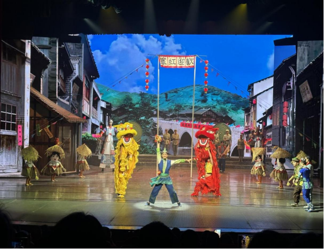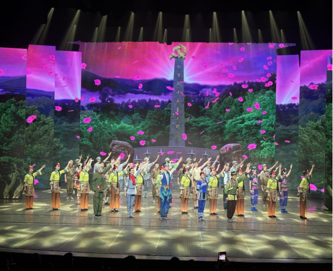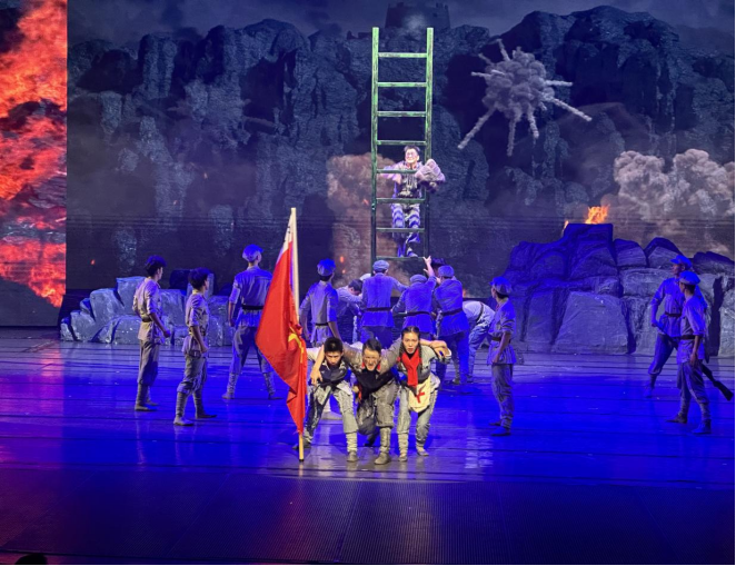 全体党员集体观看了红色剧目《追随》。气势恢宏的舞台布景、跌宕起伏的剧情,以及剧中演员们每一个高难度动作,都承载着叙事的重量,每一次情感的迸发都深深吸引了在场的每一位师生党员,将大家带入那段激情燃烧的革命岁月。该剧以杂技与戏剧相结合的艺术形式,融合红色文化与民族元素,生动再现了遵义会议、四渡赤水等重大历史事件,引发了师生们强烈的情感共鸣。