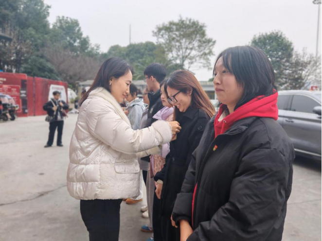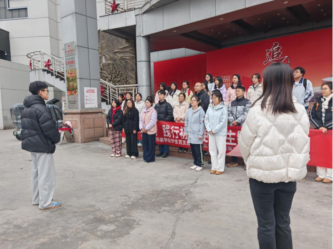 观影结束,支部书记为新入党党员佩戴党员徽章,学生第一党支部书记杨晓艳带领全体党员庄严宣读入党誓词。老党员张啟鹏与新入党党员白航宇分享观影感悟,他们结合自身经历畅谈对信仰与初心的理解,引发在场党员的深刻共鸣。