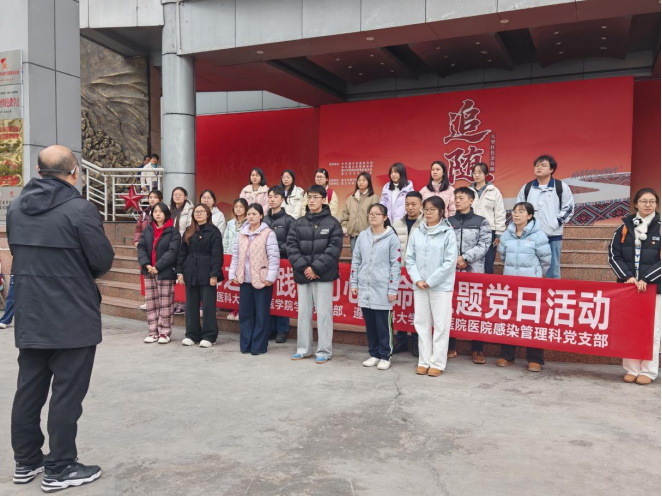 17日下午 ,全科医学院学生党支部、附属医院感染管理科党支部,在遵义市汇川艺术中心开展了“追随信仰之光 践行初心使命”的联合主题党日活动。活动由学生第二党支部支部书记陈圆圆主持。