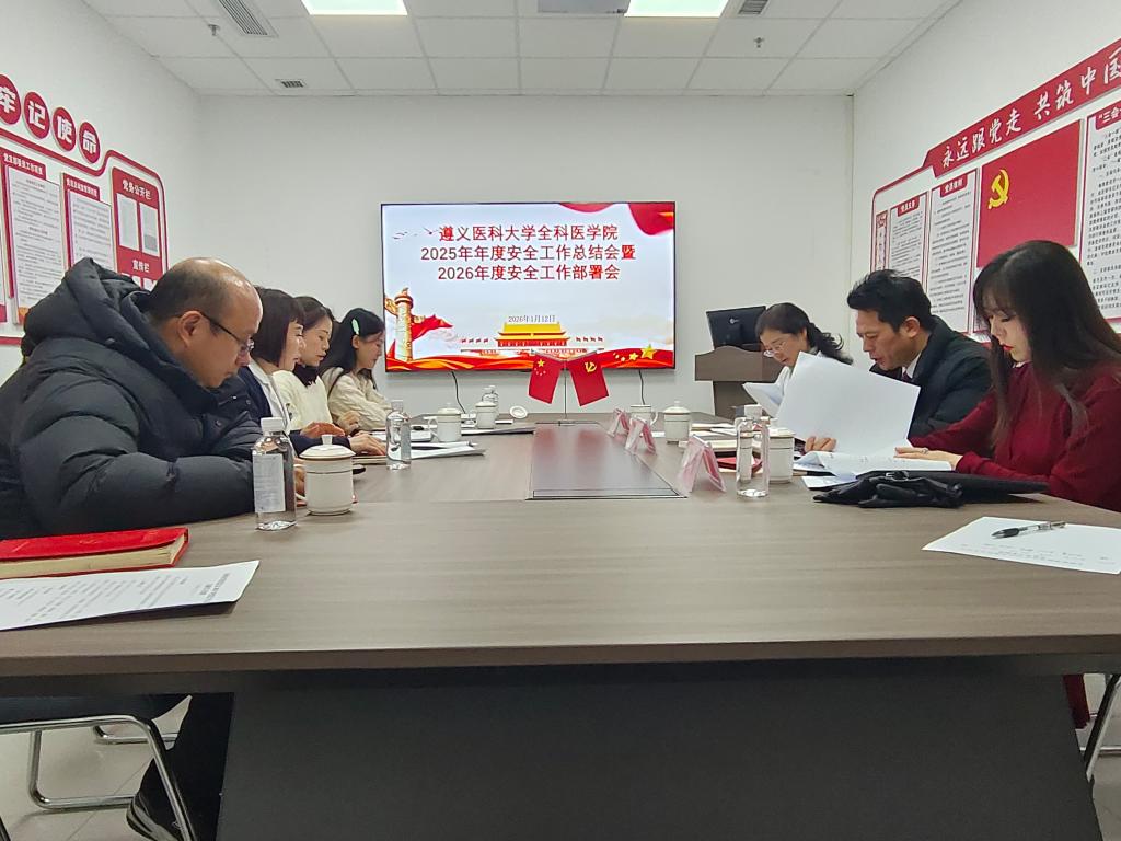 2026年1月12日,我院召开2025年度安全工作总结会暨2026年度安全工作部署会。会议由党总支书记黎飞主持,学院院长肖雪、副院长邱隆敏及支部负责人、辅导员、护士长、医生代表、教师代表参会。此次会议旨在总结过去一年的安全工作成效,同时部署新一年安全工作。