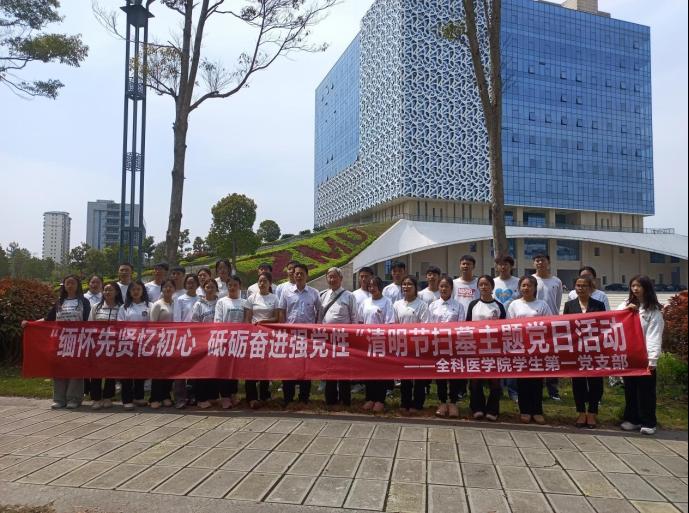 全科医学院学生第一党支部于4月2日下午13:00在新浦校区开展了“缅怀先贤忆初心 砥砺奋进强党性”清明扫墓主题党日活动,本次活动由支部书记胡艳华主持,全科医学院党总支书记黎飞、关工委副主任滕久军出席活动,支部全体党员参加。