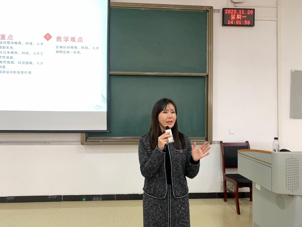肖雪以“加快建设教育强国、科技强国、人才强国”为主题,从“加快建设教育强国”“铸就强国建设的坚实基础”“教育强国、科技强国、人才强国的战略部署”“充分发挥高校的重要作用”四个方面展开,讲解了教育在现代化建设的作用;科技创新是国家发展的重要动力;教育、科技、人才是全面建成社会主义现代化国家的战略性支撑;聚焦办学方向,加强教师队伍建设,始终坚持党的全面领导。教育强,则科技强,科技强国必须靠教育强国和人才强国支撑。二十大报告提出,深入实施人才强国战略,坚持尊重劳动、尊重知识、尊重人才、尊重创造,完善人才战略布局,加快建设世界重要人才中心和创新高地,着力形成人才国际竞争的比较优势,把各方面优秀人才集聚到党和人民事业中来。肖雪着重介绍构建新发展格局,实现高质量发展,离不开高水平科技自立自强,离不开国家战略人才力量的有力支撑,优先还是要办好人民满意的教育。