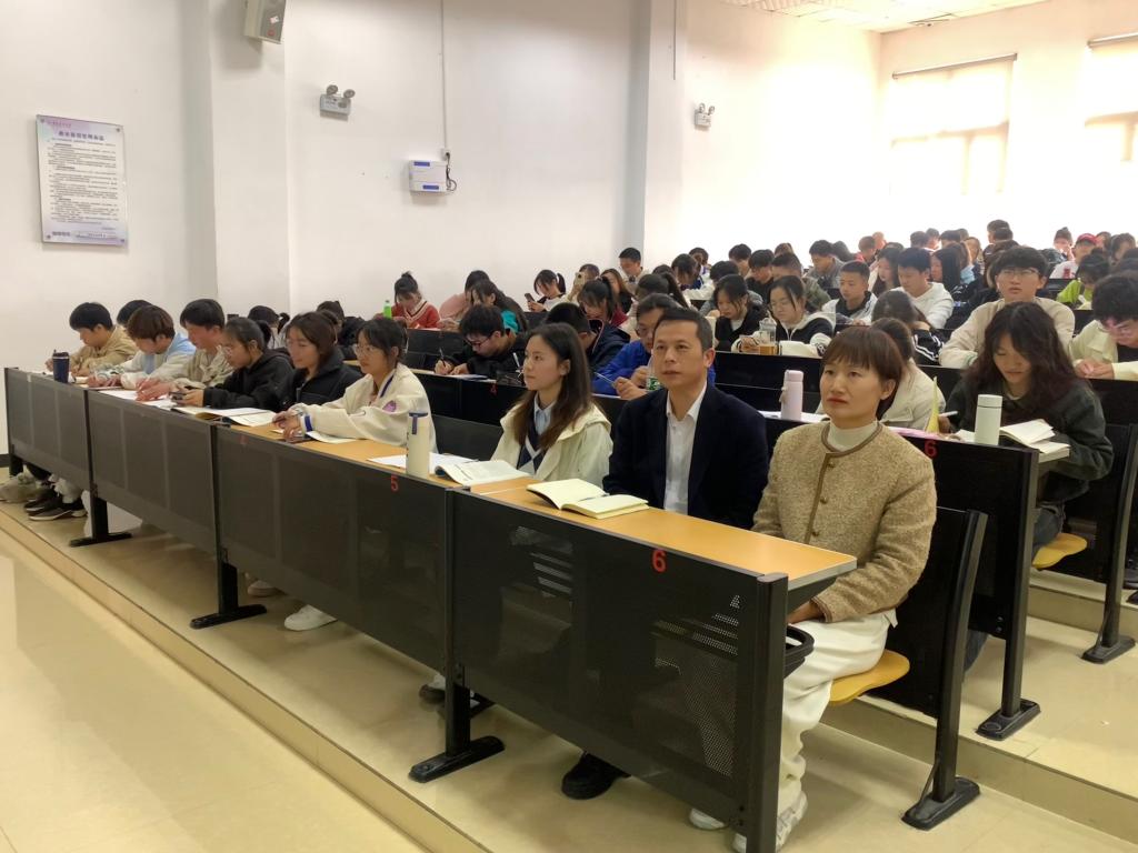 11月20日下午全科医学院副院长肖雪在新蒲校区第二教学楼第10梯教室为全科医学院2022级本科生讲授思政课,学院团委负责人陈圆圆参加。全科医学院党总支书记黎飞进行了认真的聆听。
