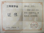 1.2020—2021年 获遵义医科大学三等奖学金