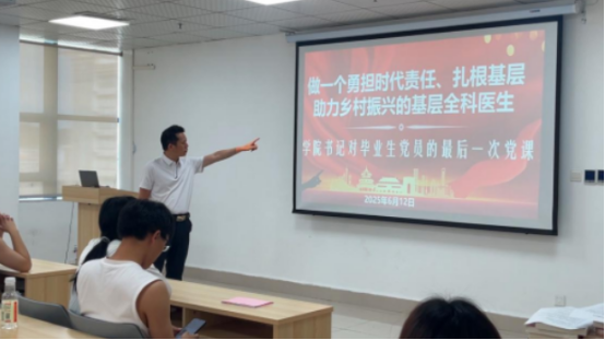 6月12日,党总支书记黎飞为毕业生们上了最后一次党课、一堂满怀情感的生动的党课,习近平总书记在贵州考察时的重要讲话精神。书记结合实际案例,详细解读了讲话精神的丰富内涵和重要意义,引导同学们坚定理想信念,心系国家发展,鼓励大家在毕业后无论走到哪里,都要保持积极向上的精神状态,牢记习近平总书记对贵州一以贯之的指导,勇于担当,敢于创新,在新时代的浪潮中书写属于自己的精彩篇章。