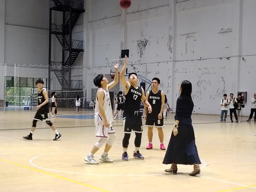 在领导致辞后,运动员代表、裁判员代表相继发言,表示恪守体育职业道德,遵守运动竞赛规则;规则介绍后,临床第一学院辅导员向苏婷向两支队伍授球。然后第一场比赛开始。比赛过程中,全科医学院与第一临床学院的球员们各显神通,现场观众的呐喊声一浪高过一浪,充分感受到运动员们的拼搏精神和团结力量。