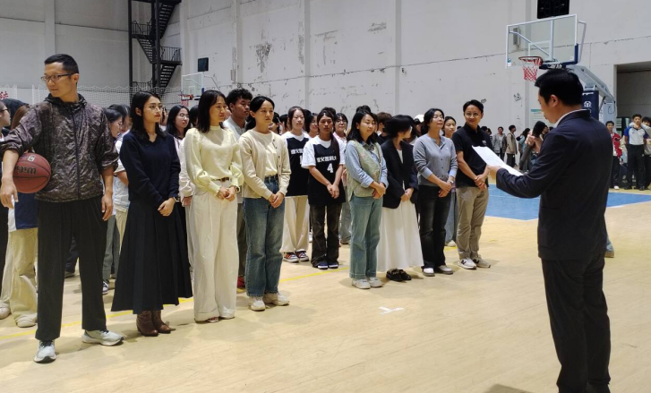 开幕式上,临床学院党委委员、全科医学院党总支书记黎飞致辞,他说2025级新生的到来为遵医注入了蓬勃的青春活力,并热情洋溢地表达了对新生们的欢迎与美好祝愿。黎飞书记强调,迎新篮球赛不仅是体育竞技的平台,更是增强团结协作、展现青春活力的重要舞台。他提出三点期望,一是希望这场比赛作为大学生活精彩的“第一课”,二是希望将遵医人团结拼搏、永不言败的精神火炬传递下去,三是尊重对手,服从判罚,共同营造一场文明、热烈、和谐的篮球盛会。黎飞书记鼓励所有参与的同学们,无论胜负,都要通过比赛锻炼意志,增进友谊,充分展现新时代医学生的卓越风貌。