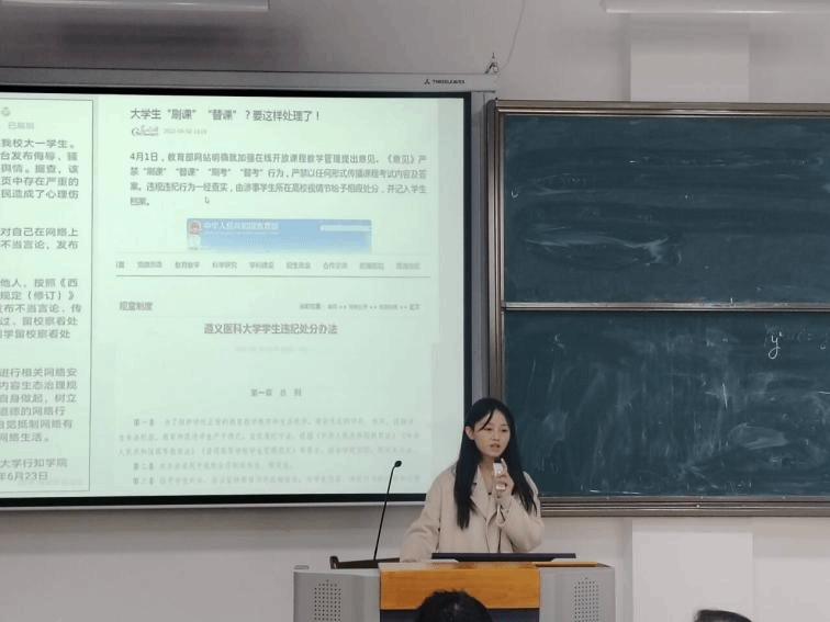 班会伊始,辅导员杨晓艳以“廉洁教育”为主题开展专题授课,引导同学们筑牢廉洁自律的思想根基。随后,班级团支书就近期班级学习与生活情况进行详细汇报,系统梳理班级建设状况。