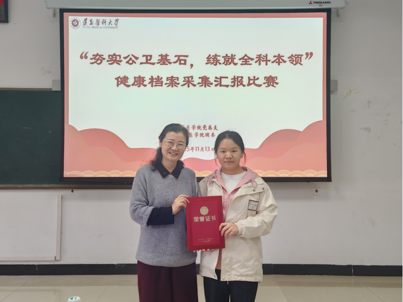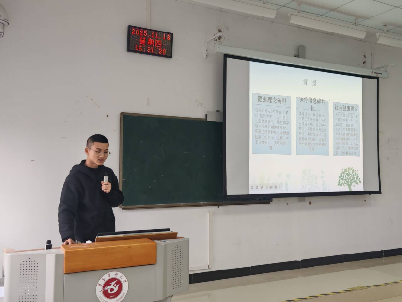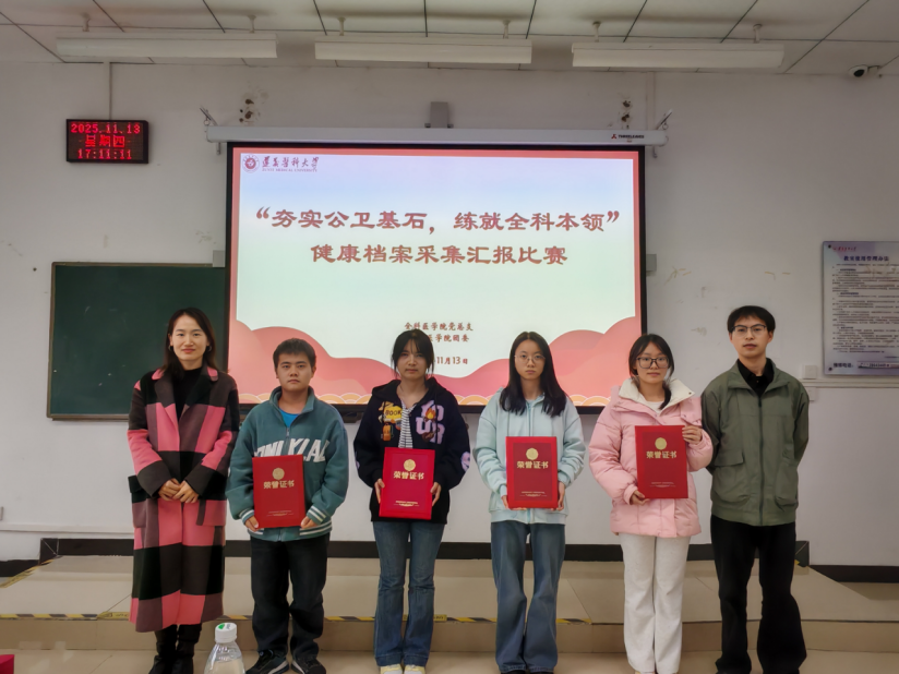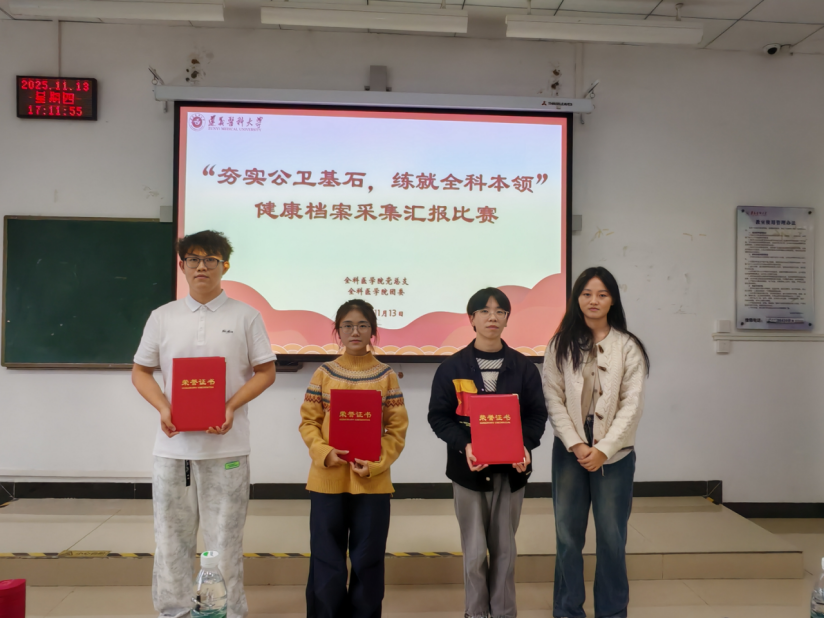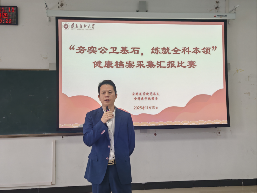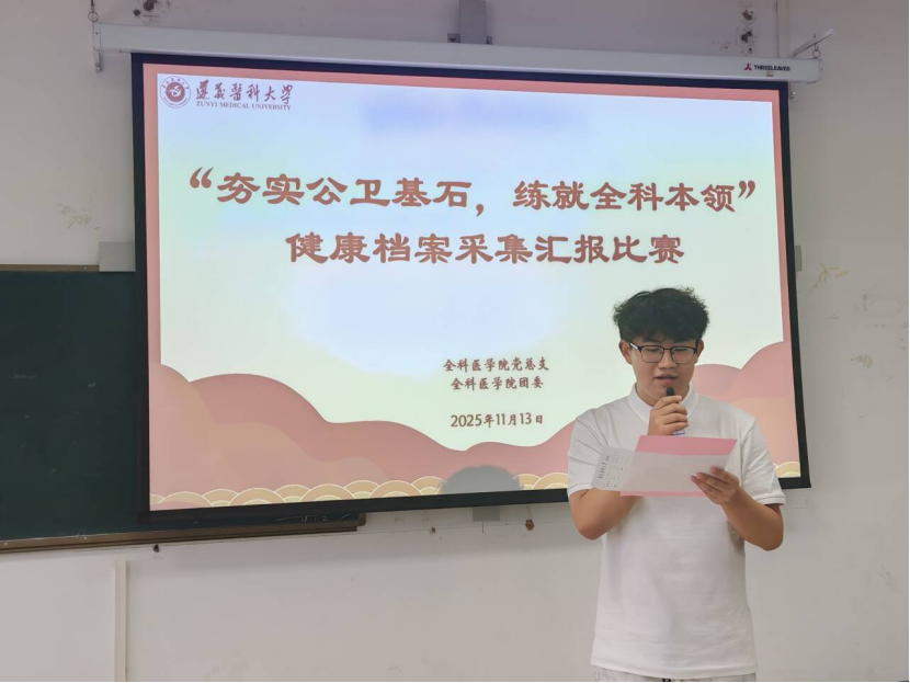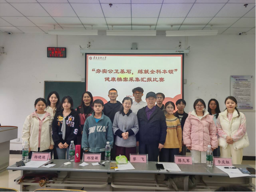 11月13日16:00,全科医学院于第一教学楼3-6A教室进行了2025年健康档案采集汇报比赛。学院党总支书记、关工委主任黎飞,副院长邱隆敏,关工委副主任滕久军,学生管理办公室副主任李庆钰,学生支部书记杨晓艳、陈圆圆,办公室助理陆宏亮担任评委,2024级全体同学参与。