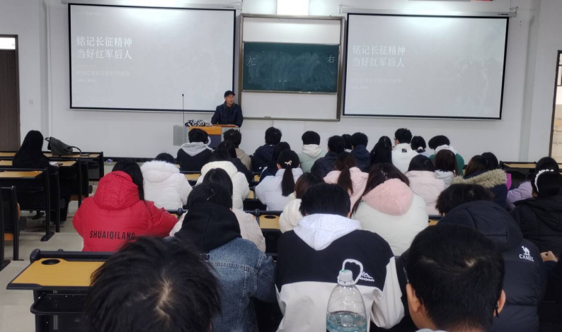 1月8号上午10:00,学院关工委副主任滕久军老师在三教32阶梯教室,以“铭记长征精神,当好红军后人”为主题,为25级同学们开展了本学期最后一堂红色教育班会。
